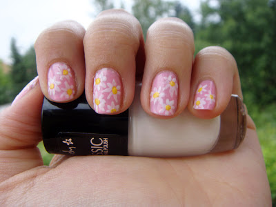 Ostatnio naszło mnie na iście wiosenno-letnie zdobienie - stokrotki! Wzięłam się od razu do roboty i oto co mi wyszło. :) Przepraszam za jakość, ale czas na zdjęcia miałam dopiero 2 dnia i światło było beznadziejne... :( A nie wiedziałam kiedy znowu będę miała chwilę i w jakim stanie będą wtedy moje paznokcie. ;)