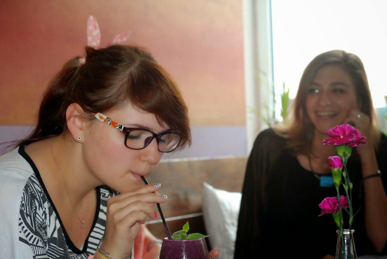 Nawet nie sądziłam, że ktoś mi zdjęcie zrobił. ;) Ten koktajl był pyszny! Wyglądał jak z samych jagód, a smakował jak bananowy. :D |